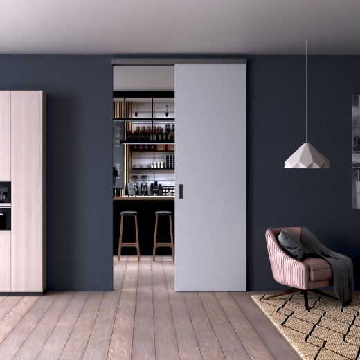 Раздвижные системы идеально подходят для зонирования, организации проходов и создания мобильных перегородок. Конструкция устроена таким образом, что дверное полотно движется по направляющим вдоль стены или внутри нее (при установке кассеты). Это позволяет отказаться от лишнего радиуса открывания и использовать освободившееся пространство под мебель, декор или технику.
