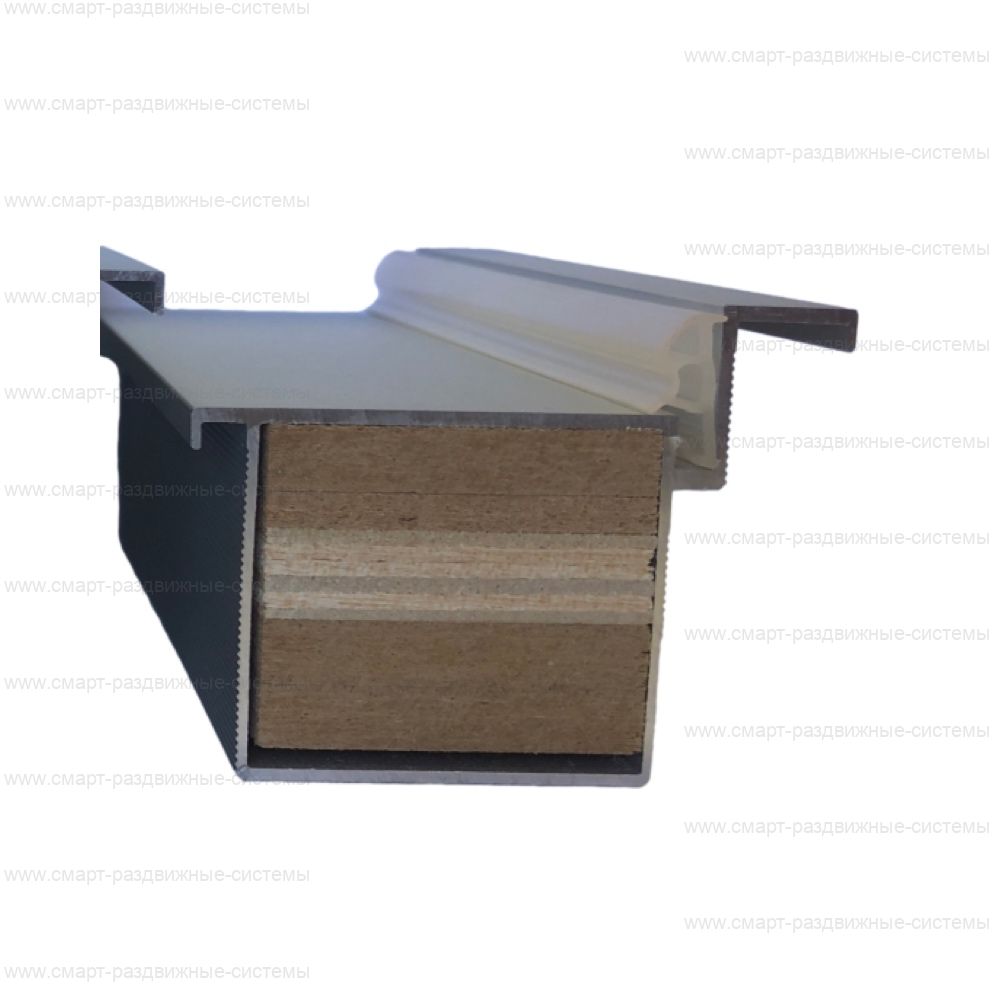Полотно двери имеет толщину 42 и 59 мм. По периметру полотна установлена алюминиевая кромка в цвете хром, выступающая за короб с каждой стороны. Это необходимо учитывать при монтаже, так как кромка выступает за пределы короба и будет видна.